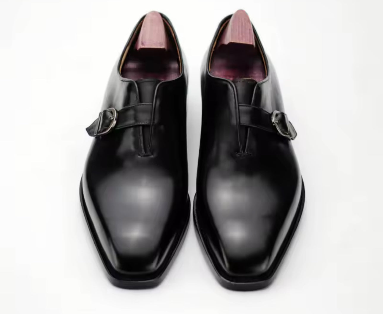 Elevate your formal look with these black monk-strap dress shoes, crafted from full-grain calf leather with a genuine leather lining for a smooth, breathable feel. Built with Goodyear-welted construction and a premium Italian leather outsole for long-lasting wear and easy resoling.